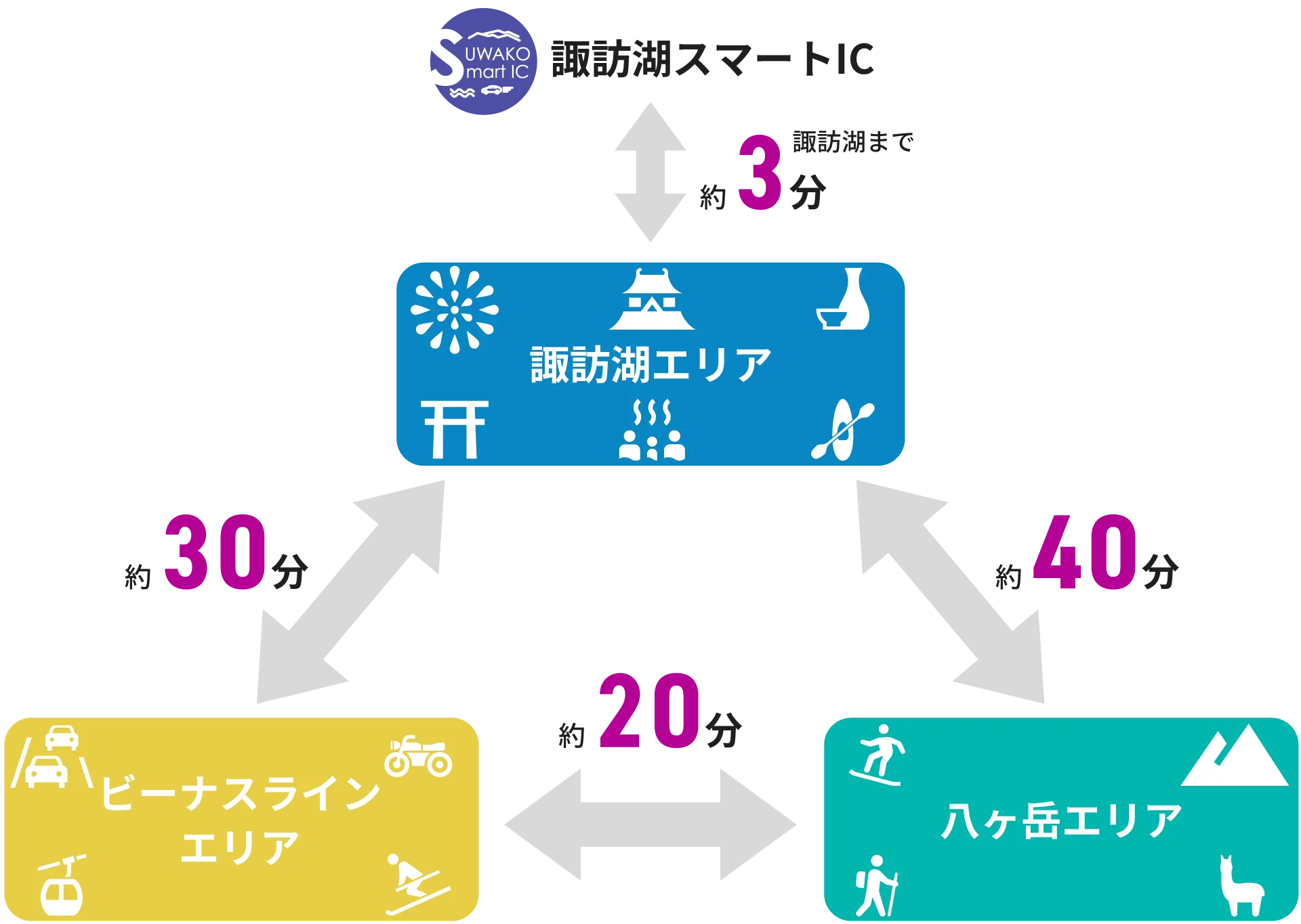 - 諏訪湖エリア ~ ビーナスラインエリア※1:約30分
