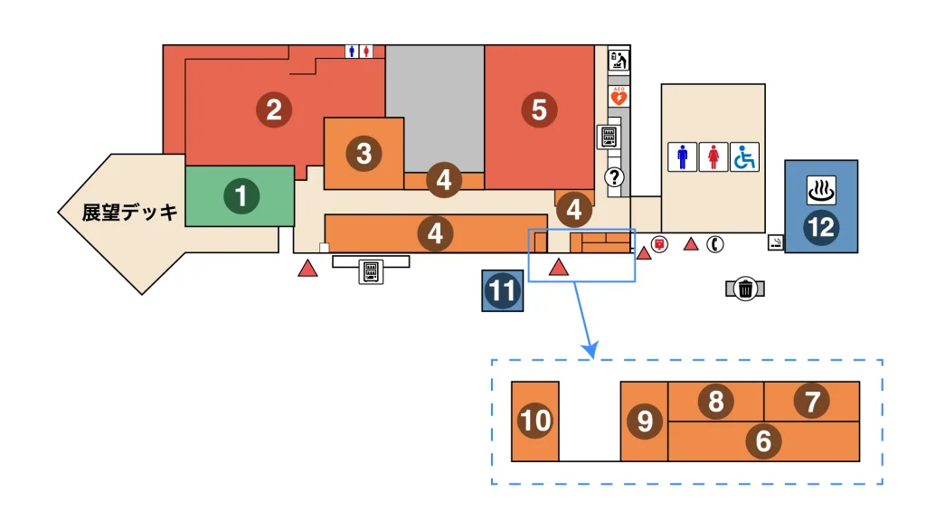 売店には、諏訪地域のお土産が豊富に取り揃えられており、フードコートやレストランではご当地グルメも楽しめます。